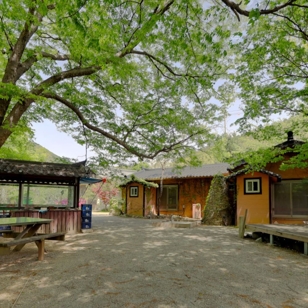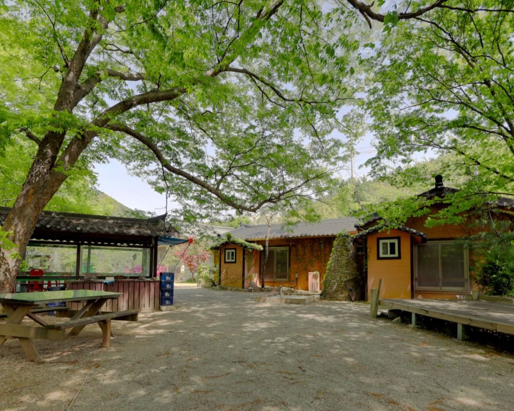 저희 황토기와집펜션은 대미산과 황장산 사이에 위치하며 동로소와 폭포, 금천을 마당으로 하고 이삼백년 된 느티나무들이 자연그늘을 만들어 풍광과 시원함을 더해줍니다